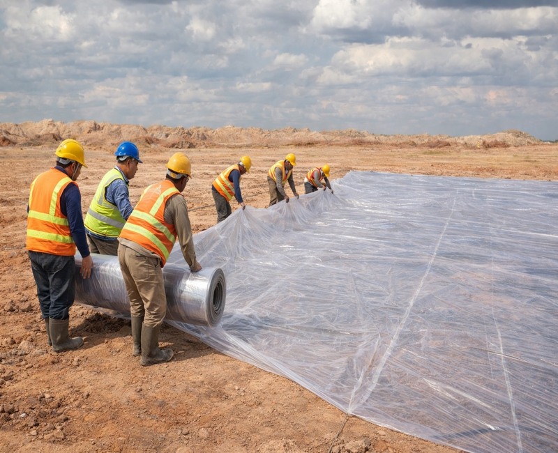 ENDUPAK : ม้วนพลาสติกปูพื้นก่อสร้าง ปูพื้นก่อสร้างเขื่อน