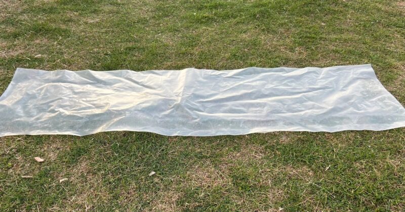 2. ใช้ แผ่นพลาสติกปูพื้น นี้ ปูคลุมลงไปให้ทั่วบริเวณที่จะเท
